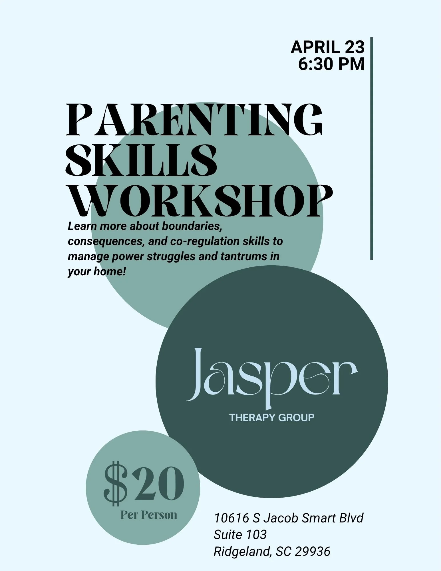 Come see our office and take time to learn skills which could help decrease power struggles and tantrums in your home! This is an event for parents of kids of all ages. The workshop will be small and focused on specific issues parents at the workshop would like to address! Space is limited, so please reserve your spot if you'd like to attend!